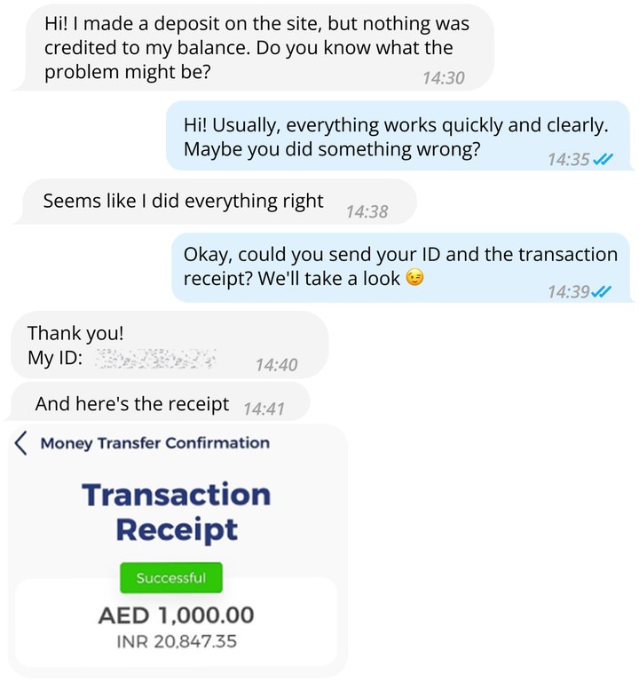 Situations vary: a player might not understand how to register, make a deposit, or play a certain game. At this stage, it's important that they don't close your channel and continue scrolling their feed on Instagram or YouTube due to misunderstanding and unfamiliar surroundings. To keep the player, offer them your help.