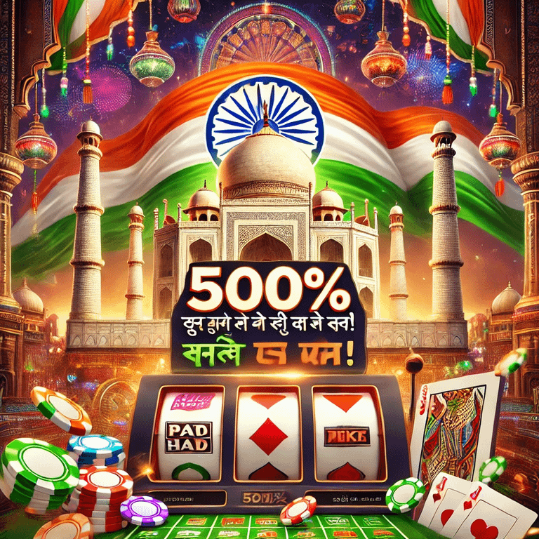 Ejemplo de mensaje: "Genere una creatividad fotográfica muy eficaz para atraer jugadores de la India a un casino en línea. Concéntrese en los elementos culturales locales. La foto debe incluir el texto: «Reclame su bono de depósito del 500% y gane el premio mayor» en hindi". Ejemplos de creatividades generadas por IA: