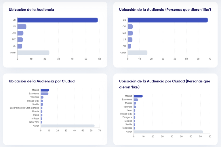 En la parte inferior del informe se muestran gráficos detallados, que permiten un análisis más profundo de la audiencia: su GEO, género y tipo.