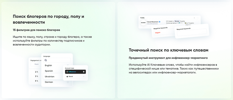 Максимальную эффективность даёт сочетание фильтров категорий (тематик блогеров) с базовыми настройками поиска. Одной категории недостаточно — важно учитывать и другие параметры, включая размер аудитории и ее вовлечённость.